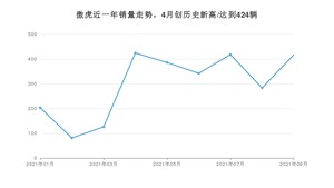 2021年9月,傲虎销量为417辆,同比增长29.5%,环比增长47.35%。1-9月份,傲虎销量为2680辆,同比增长31.37%。在最近1年中,傲虎销量在2021年04月达到最高,销量为424辆。
