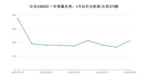 2021年9月,长安CS95销量为213辆,同比下降15.48%,环比增长29.09%。1-9月份,长安CS95销量为1870辆,同比下降18.16%。在最近1年中,长安CS95销量在2021年01月达到最高,销量为373辆。