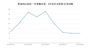 2021年9月,奥迪RS Q8销量为10辆,环比持平。1-9月份,奥迪RS Q8销量为176辆,在最近1年中,奥迪RS Q8销量在2021年05月达到最高,销量为33辆。