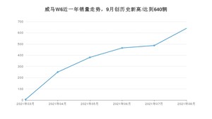 2021年9月,威马W6销量为640辆,1-9月份,威马W6销量为2228辆,在最近1年中,威马W6销量在2021年09月达到最高,销量为640辆。