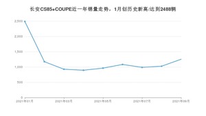 2021年9月,长安CS85 COUPE销量为1253辆,同比下降0.79%,环比增长22.24%。1-9月份,长安CS85 COUPE销量为10789辆,同比增长7.84%。在最近1年中,长安CS85 COUPE销量在2021年01月达到最高,销量为2488辆。