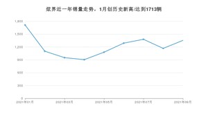 2021年9月,炫界销量为1354辆,同比增长50.11%,环比增长16.02%。1-9月份,炫界销量为10937辆,同比增长304.62%。在最近1年中,炫界销量在2021年01月达到最高,销量为1713辆。