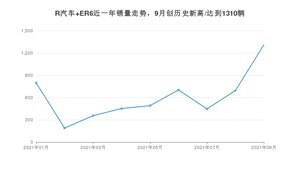 2021年9月,R汽车品牌总体销量达到1807辆,其中R汽车 ER6销量达到1310辆,占品牌总销量的72.5%。
