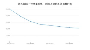 2021年9月,风光500销量为2093辆,1-9月份,风光500销量为23777辆,在最近1年中,风光500销量在2021年01月达到最高,销量为4891辆。
