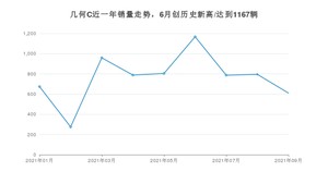 2021年9月,几何C销量为610辆,同比下降29.56%,环比下降23.27%。1-9月份,几何C销量为6859辆,同比增长482.26%。在最近1年中,几何C销量在2021年06月达到最高,销量为1167辆。
