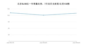 2021年9月,北京BJ30销量为130辆,环比增长7.44%。1-9月份,北京BJ30销量为383辆,在最近1年中,北京BJ30销量在2021年07月达到最高,销量为132辆。