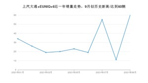 2021年9月,上汽大通 EUNIQ 6销量为60辆,同比增长150%,环比增长445.45%。1-9月份,上汽大通 EUNIQ 6销量为267辆,同比增长551.22%。在最近1年中,上汽大通 EUNIQ 6销量在2021年09月达到最高,销量为60辆。