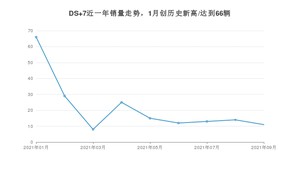 2021年9月,DS 7销量为11辆,同比下降47.62%,环比下降21.43%。1-9月份,DS 7销量为193辆,同比下降3.02%。在最近1年中,DS 7销量在2021年01月达到最高,销量为66辆。