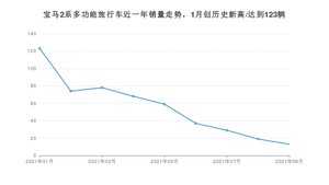 2021年9月,宝马2系多功能旅行车销量为13辆,同比下降84.71%,环比下降31.58%。1-9月份,宝马2系多功能旅行车销量为500辆,同比下降55.44%。在最近1年中,宝马2系多功能旅行车销量在2021年01月达到最高,销量为123辆。