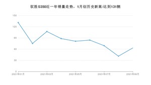 2021年9月,驭胜S350销量为63辆,环比增长53.66%。1-9月份,驭胜S350销量为739辆,在最近1年中,驭胜S350销量在2021年01月达到最高,销量为131辆。