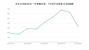 2021年9月,东风本田M-NV销量为324辆,环比下降48.57%。1-9月份,东风本田M-NV销量为3494辆,在最近1年中,东风本田M-NV销量在2021年07月达到最高,销量为680辆。