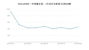 2021年9月,VGV U70销量为461辆,同比下降61.26%,环比增长16.41%。1-9月份,VGV U70销量为4482辆,同比下降37.45%。在最近1年中,VGV U70销量在2021年01月达到最高,销量为918辆。
