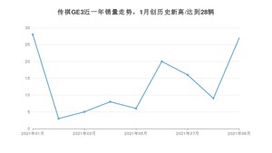 2021年9月,传祺GE3销量为27辆,同比下降50.91%,环比增长200%。1-9月份,传祺GE3销量为122辆,同比下降79.36%。在最近1年中,传祺GE3销量在2021年01月达到最高,销量为28辆。