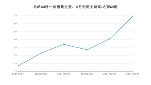 2021年9月,思皓X4销量为69辆,1-9月份,思皓X4销量为201辆,在最近1年中,思皓X4销量在2021年09月达到最高,销量为69辆。