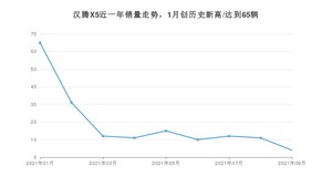 2021年9月,汉腾X5销量为4辆,同比下降95.6%,环比下降63.64%。1-9月份,汉腾X5销量为171辆,同比下降83.37%。在最近1年中,汉腾X5销量在2021年01月达到最高,销量为65辆。