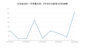 2021年9月,比亚迪e5销量为189辆,同比下降46.91%,环比增长759.09%。1-9月份,比亚迪e5销量为554辆,同比下降72.95%。在最近1年中,比亚迪e5销量在2021年09月达到最高,销量为189辆。