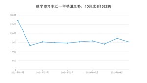 2021年10月,咸宁市汽车总销量为1522辆,同比下降6.74%,环比下降11.46%。1-10月份,咸宁市总销量为16283辆,同比增长7.24%。在最近1年中,咸宁市销量在2021年01月达到最高,销量为2701辆。