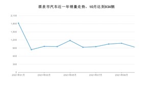 2021年10月,酒泉市汽车总销量为934辆,同比下降32.22%,环比下降13.2%。1-10月份,酒泉市总销量为10692辆,同比增长20.41%。在最近1年中,酒泉市销量在2021年01月达到最高,销量为1820辆。