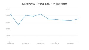 2021年10月,包头市汽车总销量为3531辆,同比下降7.47%,环比增长8.75%。1-10月份,包头市总销量为36043辆,同比增长8.75%。在最近1年中,包头市销量在2021年05月达到最高,销量为4227辆。