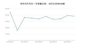 2021年10月,深圳市汽车总销量为38124辆,同比下降3.87%,环比下降3.22%。1-10月份,深圳市总销量为348005辆,同比增长18.21%。在最近1年中,深圳市销量在2021年01月达到最高,销量为44256辆。