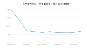 2021年10月,巴中市汽车总销量为1376辆,同比增长2.3%,环比增长10.43%。1-10月份,巴中市总销量为17137辆,同比增长17.4%。在最近1年中,巴中市销量在2021年01月达到最高,销量为3907辆。