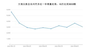 2021年10月,大理白族自治州汽车总销量为3033辆,同比下降19.68%,环比下降17.47%。1-10月份,大理白族自治州总销量为33439辆,同比增长17.57%。在最近1年中,大理白族自治州销量在2021年01月达到最高,销量为5600辆。