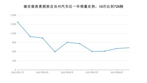 2021年10月,德宏傣族景颇族自治州汽车总销量为726辆,同比下降33.03%,环比增长3.57%。1-10月份,德宏傣族景颇族自治州总销量为8711辆,同比下降11.46%。在最近1年中,德宏傣族景颇族自治州销量在2021年01月达到最高,销量为1568辆。