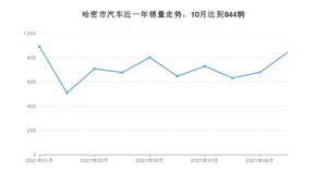 2021年10月,哈密市汽车总销量为844辆,同比增长6.97%,环比增长24.12%。1-10月份,哈密市总销量为7125辆,同比增长42.44%。在最近1年中,哈密市销量在2021年01月达到最高,销量为892辆。