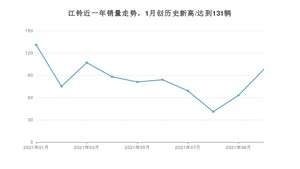 在国内市场上,江铃在2021年10月的销量为98辆,环比增长55.56%。1-10月份,江铃累计销量为837辆