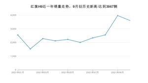 2021年10月,红旗H9销量为3598辆,同比增长88.08%,环比下降9.3%。1-10月份,红旗H9销量为25134辆,同比增长396.52%。在最近1年中,红旗H9销量在2021年09月达到最高,销量为3967辆。