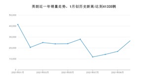 2021年10月,英朗销量为26556辆,同比下降24.11%,环比增长57.65%。1-10月份,英朗销量为231453辆,同比增长4.24%。在最近1年中,英朗销量在2021年01月达到最高,销量为41335辆。