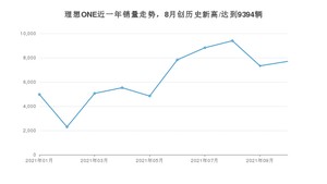 2021年10月,理想ONE销量为7696辆,同比增长123.85%,环比增长5.01%。1-10月份,理想ONE销量为63756辆,同比增长187.71%。在最近1年中,理想ONE销量在2021年08月达到最高,销量为9394辆。
