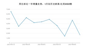 2021年10月,英仕派销量为1633辆,同比下降74.78%,环比下降65.5%。1-10月份,英仕派销量为40104辆,同比增长5.35%。在最近1年中,英仕派销量在2021年01月达到最高,销量为6502辆。