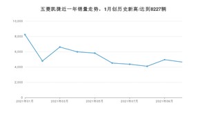 2021年10月,五菱凯捷销量为4647辆,同比增长101.61%,环比下降6.18%。1-10月份,五菱凯捷销量为53962辆,同比增长1%。在最近1年中,五菱凯捷销量在2021年01月达到最高,销量为8227辆。