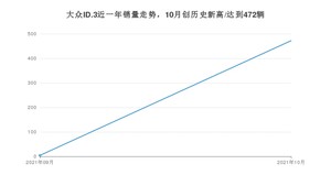 2021年10月,大众ID.3销量为472辆,环比增长11%。1-10月份,大众ID.3销量为476辆,在最近1年中,大众ID.3销量在2021年10月达到最高,销量为472辆。