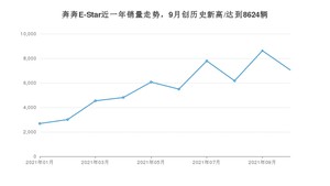 2021年10月,奔奔E-Star销量为7052辆,同比增长419.68%,环比下降18.23%。1-10月份,奔奔E-Star销量为56209辆,同比增长1%。在最近1年中,奔奔E-Star销量在2021年09月达到最高,销量为8624辆。