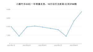 2021年10月,小鹏汽车G3销量为3769辆,同比增长325.88%,环比增长41.59%。1-10月份,小鹏汽车G3销量为19570辆,同比增长133.03%。在最近1年中,小鹏汽车G3销量在2021年10月达到最高,销量为3769辆。