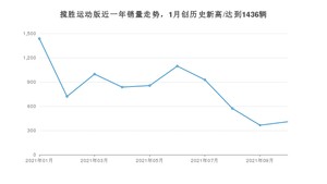 2021年10月,揽胜运动版销量为408辆,同比下降62.05%,环比增长11.78%。1-10月份,揽胜运动版销量为8213辆,同比增长0.97%。在最近1年中,揽胜运动版销量在2021年01月达到最高,销量为1436辆。