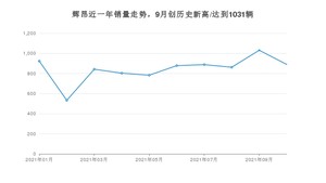 2021年10月,辉昂销量为890辆,同比增长14.4%,环比下降13.68%。1-10月份,辉昂销量为8433辆,同比增长23.47%。在最近1年中,辉昂销量在2021年09月达到最高,销量为1031辆。
