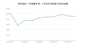 2021年10月,领克06销量为4512辆,同比增长15.13%,环比下降2.53%。1-10月份,领克06销量为42825辆,同比增长488.17%。在最近1年中,领克06销量在2021年01月达到最高,销量为5140辆。