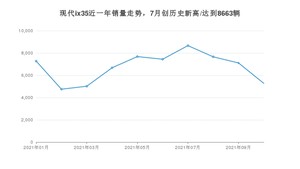 2021年10月,现代ix35销量为5272辆,同比增长1%,环比下降25.8%。1-10月份,现代ix35销量为67530辆,同比增长156.74%。在最近1年中,现代ix35销量在2021年07月达到最高,销量为8663辆。