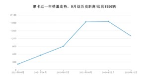 2021年10月,摩卡销量为1296辆,环比下降30.17%。1-10月份,摩卡销量为6669辆,在最近1年中,摩卡销量在2021年09月达到最高,销量为1856辆。
