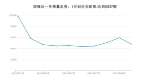 2021年10月,缤瑞销量为4720辆,同比下降31.61%,环比下降20.44%。1-10月份,缤瑞销量为53802辆,同比增长15.05%。在最近1年中,缤瑞销量在2021年01月达到最高,销量为9837辆。