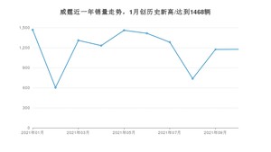2021年10月,威霆销量为1176辆,同比增长20.25%,环比增长0.17%。1-10月份,威霆销量为11853辆,同比增长35.25%。在最近1年中,威霆销量在2021年01月达到最高,销量为1468辆。