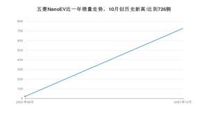 2021年10月,五菱NanoEV销量为726辆,环比增长3%。1-10月份,五菱NanoEV销量为746辆,在最近1年中,五菱NanoEV销量在2021年10月达到最高,销量为726辆。