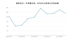 2021年10月,撼路者销量为235辆,同比增长1.73%,环比下降14.86%。1-10月份,撼路者销量为2066辆,同比增长37.37%。在最近1年中,撼路者销量在2021年06月达到最高,销量为293辆。