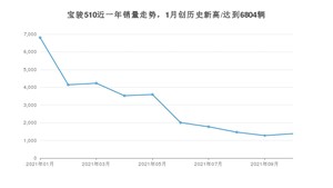 2021年10月,宝骏510销量为1380辆,同比下降77.13%,环比增长8.41%。1-10月份,宝骏510销量为30183辆,同比下降50.45%。在最近1年中,宝骏510销量在2021年01月达到最高,销量为6804辆。