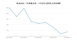 2021年10月,奥迪S4销量为77辆,同比下降64.02%,1-10月份,奥迪S4销量为2330辆,同比增长461.45%。在最近1年中,奥迪S4销量在2021年01月达到最高,销量为498辆。
