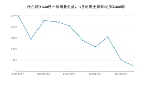 2021年10月,沃尔沃XC40销量为233辆,同比下降89.64%,环比下降54.31%。1-10月份,沃尔沃XC40销量为15260辆,同比下降17.2%。在最近1年中,沃尔沃XC40销量在2021年01月达到最高,销量为2488辆。