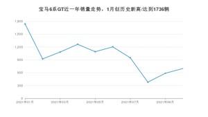 2021年10月,宝马6系GT销量为698辆,同比下降37.85%,环比增长18.91%。1-10月份,宝马6系GT销量为9906辆,同比增长8.88%。在最近1年中,宝马6系GT销量在2021年01月达到最高,销量为1736辆。